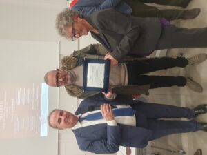 Dai mercati al web, passando per il negozio: Lo Scarpiero rappresenta l’evoluzione e la coesistenza di tre canali di diversi. L’attività nasce nel 1979 come ambulante. Nel 1989 ad essa si affianca il negozio, la cui insegna nasce da un gioco di parole col nome del titolare. Oggi la parte dei mercati viene seguita dal figlio Edoardo, mentre l’altro figlio Lorenzo si occupa delle vendite online. > Nella foto – da destra – la sorella e il fratello del premiato, che era assente per ragioni di lavoro.